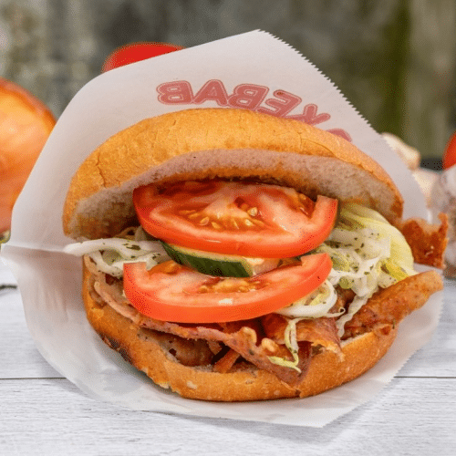 Tomatensaus, Mozzarella, Rund Doner, Ajuin, Paprika